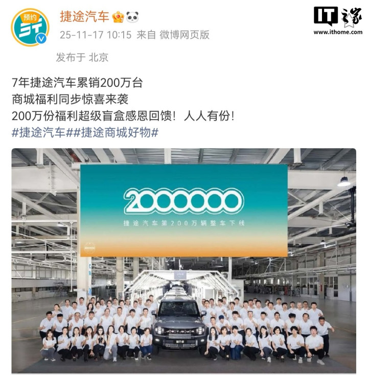IT之家从公开资料获悉,捷途是奇瑞控股集团于2018年推出的汽车产品序列,专注“旅行+”细分市场,2021年7月升级为独立品牌。该品牌以场景化、生态化、平台化为研发理念,推出X70、旅行者等燃油车型,2023年11月发布山海新能源序列;2025年1月推出“纵横”豪华电混越野序列,搭载鲲鹏超能混动CDM-O等技术。