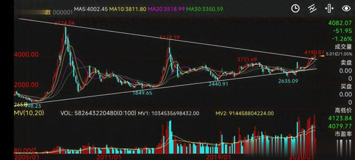 但看月线。这不是普通的反弹,是把近十年的三角整理区域,硬生生顶穿了。这种形态,不是靠情绪堆出来的,是资金用真金白银压出来的方向选择。
